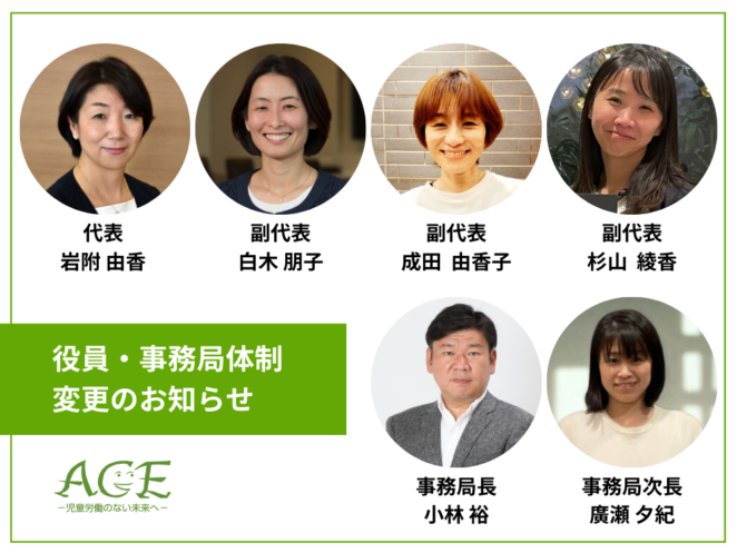 これまで携わってきた子どもたちに関わる現場での経験や、組織運営に関わる中で培ってきた知見を活かして、今後も子どもたちの声を大切にしながら、組織内外のあらゆる関係者の皆さまと協働し、児童労働のない、そしてすべての子どもの権利が守られる社会の実現に向けて取り組んでまいります。