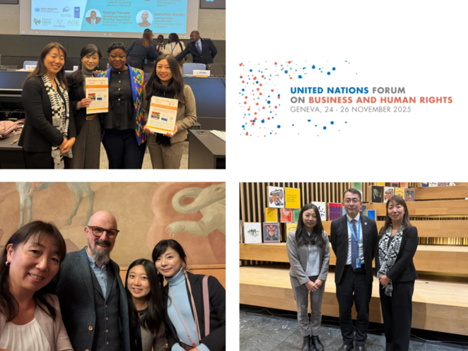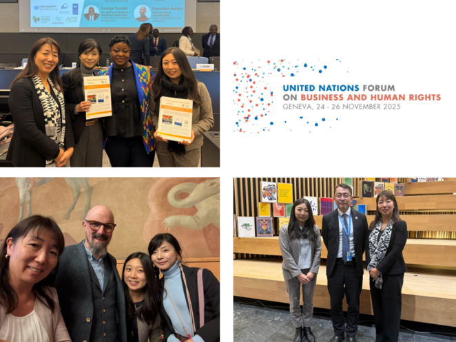 2025年11月24日~26日にスイスのジュネーヴで開催された「第14回国連ビジネスと人権フォーラム」に、ACEから岩附、佐藤、私(川村)の3名が参加してきました。本フォーラムは、世界各国の政府、国際機関、企業、市民社会組織、労働組合、弁護士、学術界などから本分野に携わる人々が一堂に会する国際会議です。今年は昨年の参加者を上回る4,650人もの参加がありました。