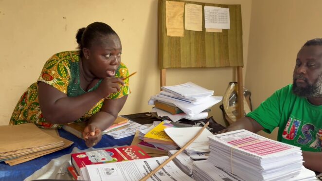 校長先生(写真左)は、子どもたちとともにドラムを叩きながら村を行進し、学校に通うことの大切さを住民に訴えるアイデアも提案しています。ガーナも国を挙げてガラムセイの取り締まりや国民への啓発を行っていますが、規制だけに頼らず、地域自身が変わろうとすることが持続的な変化につながります。