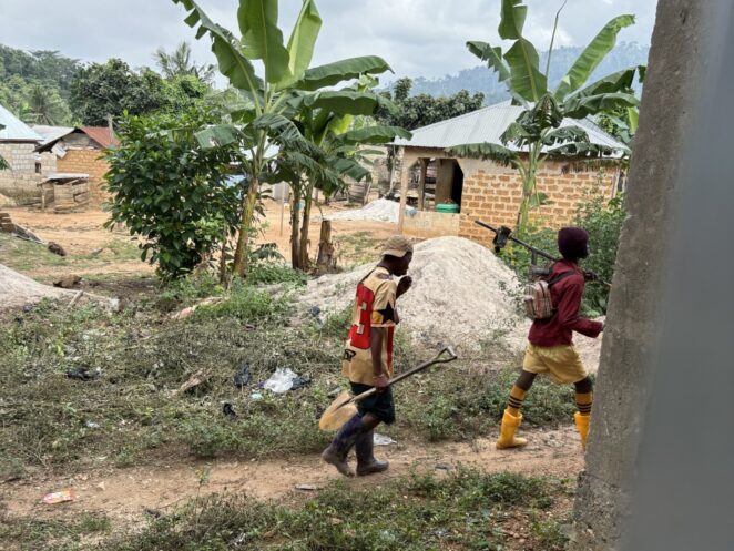学校の時間帯に10歳くらいの少年3人がコミュニティ内の草むらで土を掘って運んでいるところに遭遇しました。呼び止めると土を置いて逃げたのですが、すぐに戻ってきたので尋ねてみたところ、家に持ち帰り、泥の中から金を探すのだといいます。