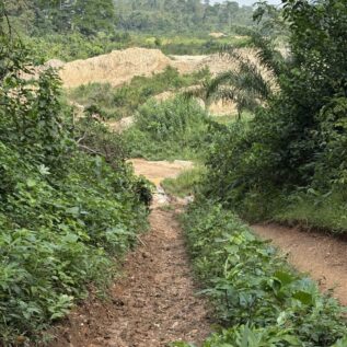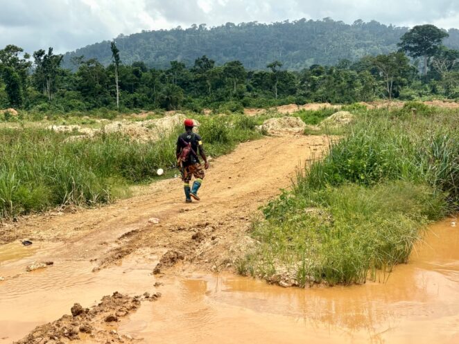 コミュニティの学校の裏手から少し歩くと、金の採掘が行われているガラムセイの現場へと続く道が現れます。学校と採掘場は決して離れた場所にあるのではなく、子どもたちの日常のすぐ隣に存在しています。