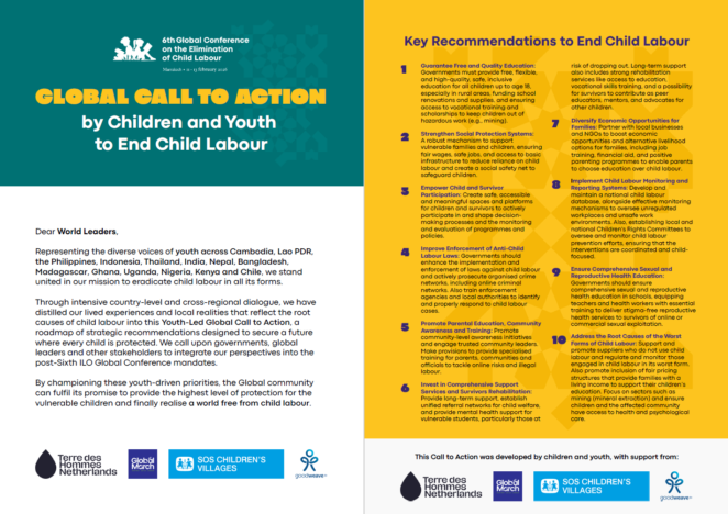 最終日に発表された成果文書では、「2030年までにすべてのILO加盟国が児童労働に関する国家政策を設けること」が指標として明記されました。