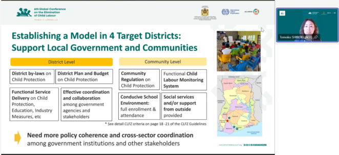 - ガーナで進めている「児童労働フリーゾーン(CLFZ)」の取り組みを国際社会へ発信