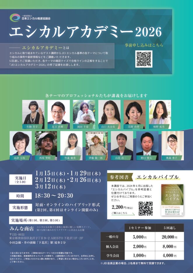 お申込み・詳細はこちら:エシカルアカデミー2026 お申し込み受付開始のお知らせ|一般社団法人日本エシカル推進協議会