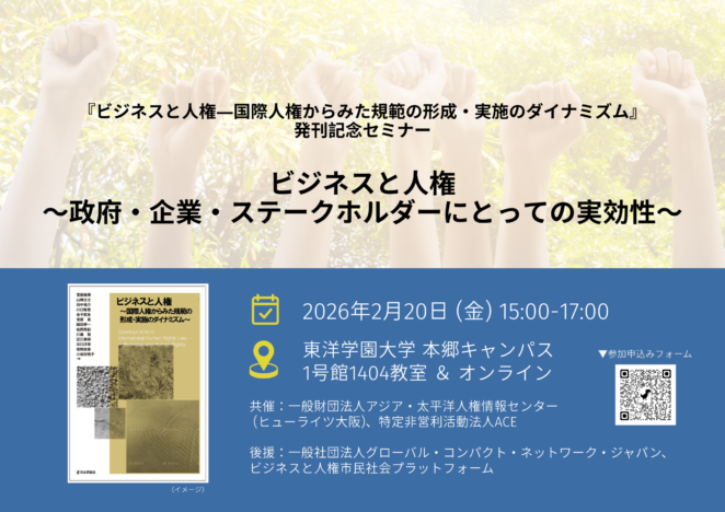 共著発刊記念セミナー「ビジネスと人権~政府・企業・ステークホルダーにとっての実効性~」